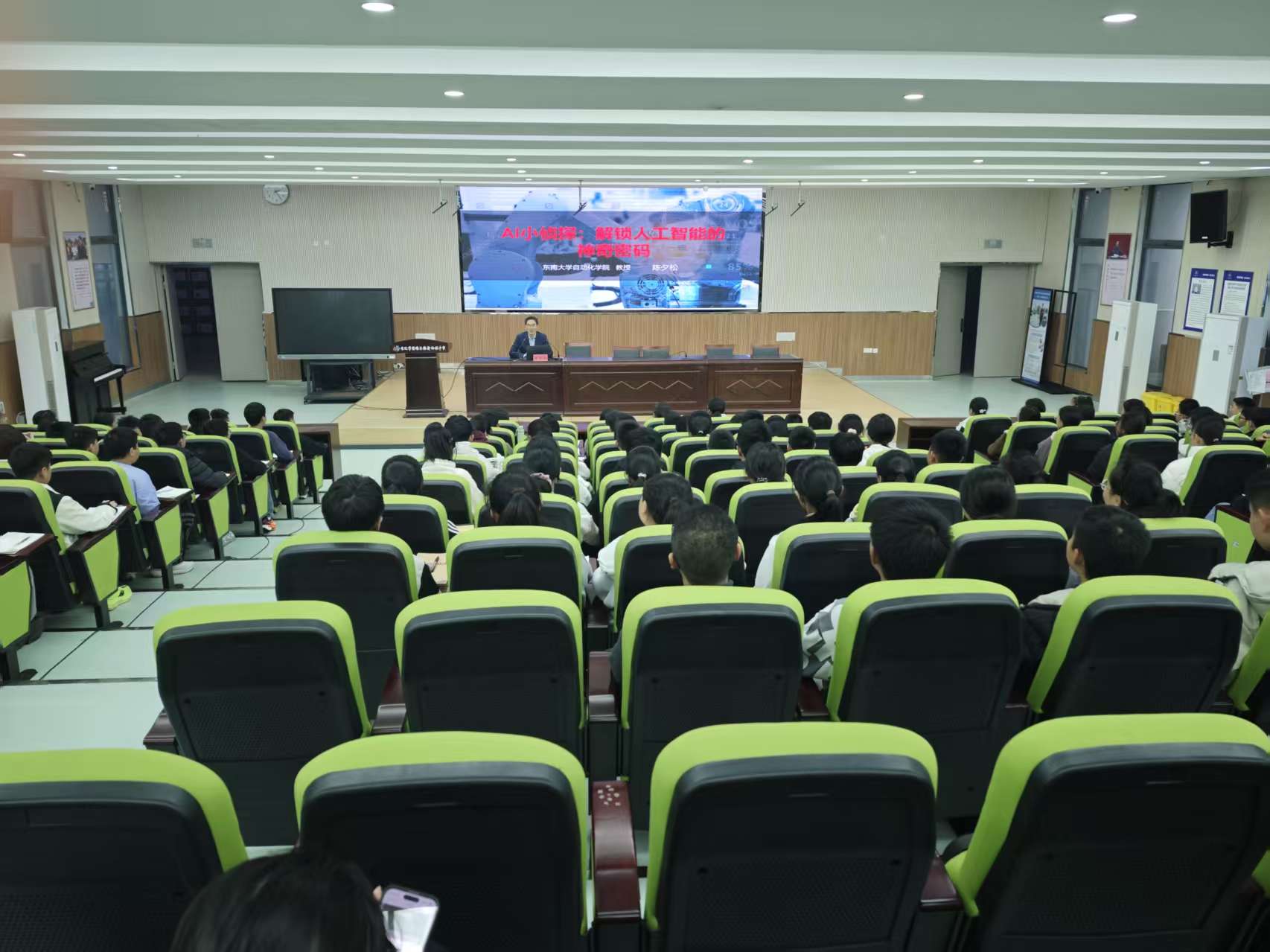在宿豫區(qū)豫新初級中學(xué),陳夕松教授以“AI小偵探:解鎖人工智能的神奇密碼”為主題展開分享。講座中,他用通俗易懂的語言解答了“AI是什么”的核心疑問,生動闡述了人工智能對日常生活的深刻改變,并結(jié)合自動駕駛、圍棋人機(jī)大戰(zhàn)等經(jīng)典案例,將抽象的技術(shù)原理轉(zhuǎn)化為直觀可感的現(xiàn)實(shí)場景,為學(xué)生們打開了探索人工智能世界的大門,讓大家沉浸式感受科技的魅力。